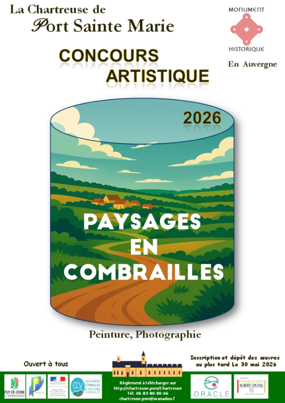 Ce concours artistique proposé par l’association des Amis de la Chartreuse Port Sainte Marie en partenariat avec l’ORACLE a pour objectif de faire découvrir, de participer à la mise en valeur du site patrimonial, du cadre naturel de la chartreuse Port Sainte Marie et aussi de participer à l’animation culturelle des Combrailles.