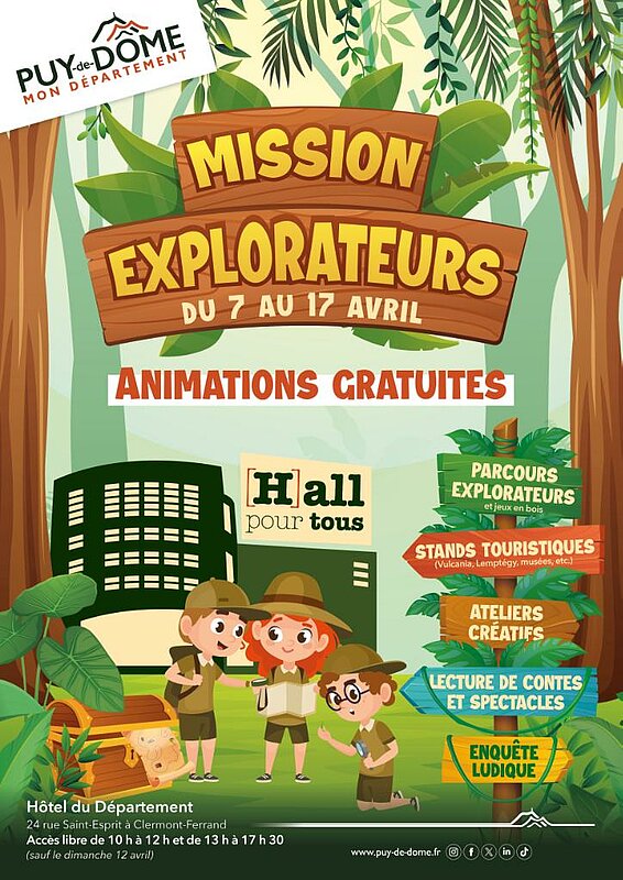 Direction de la communication - Conseil départemental du Puy-de-DômeNOUVEAU ! Le parcours des explorateurs : une expérience immersive et conviviale pour petits et grands : ce parcours acrobatique t’invite à tester ton agilité, ton équilibre et ton esprit d’aventure. Accessible à partir d’un mètre, ce dispositif ludique permet aux enfants de s’initier à l’escalade et aux parcours type accrobranche, accompagnés de leurs parents pour partager des moments en famille inoubliables.
