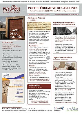 Votre année scolaire 2025-2026 aux Archives départementales du Puy-de-Dôme