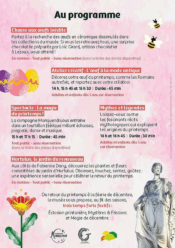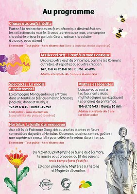 Partez à la recherche des œufs en céramique dissimulés dans les collections du musée. Observez, explorez et si tous les œufs sont découverts, une délicieuse surprise préparée par Loïc Girard, artisan chocolatier de Lezoux, vous attend !