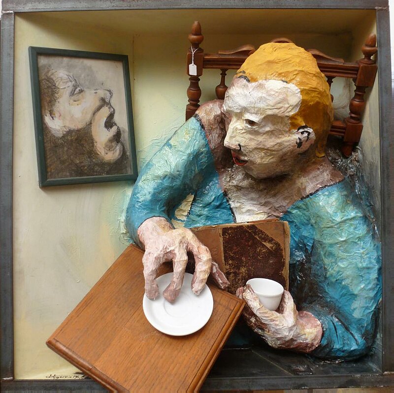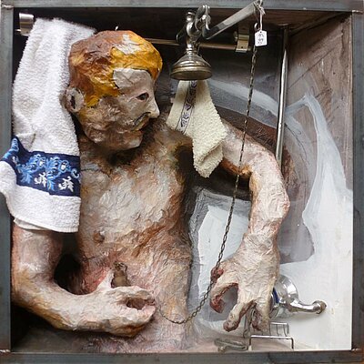 Issu du monde du théâtre où il évolue en tant que scénographe, décorateur et régisseur lumière, il est un artiste à part mélangeant peinture, dessin et sculpture au service d’un univers expressionniste très imaginatif. Ces œuvres mettent en scène des personnages tragicomiques qui prennent parfois vie au détour d’un dispositif mécanique interactif où se mêlent le mouvement, la lumière et les sons.